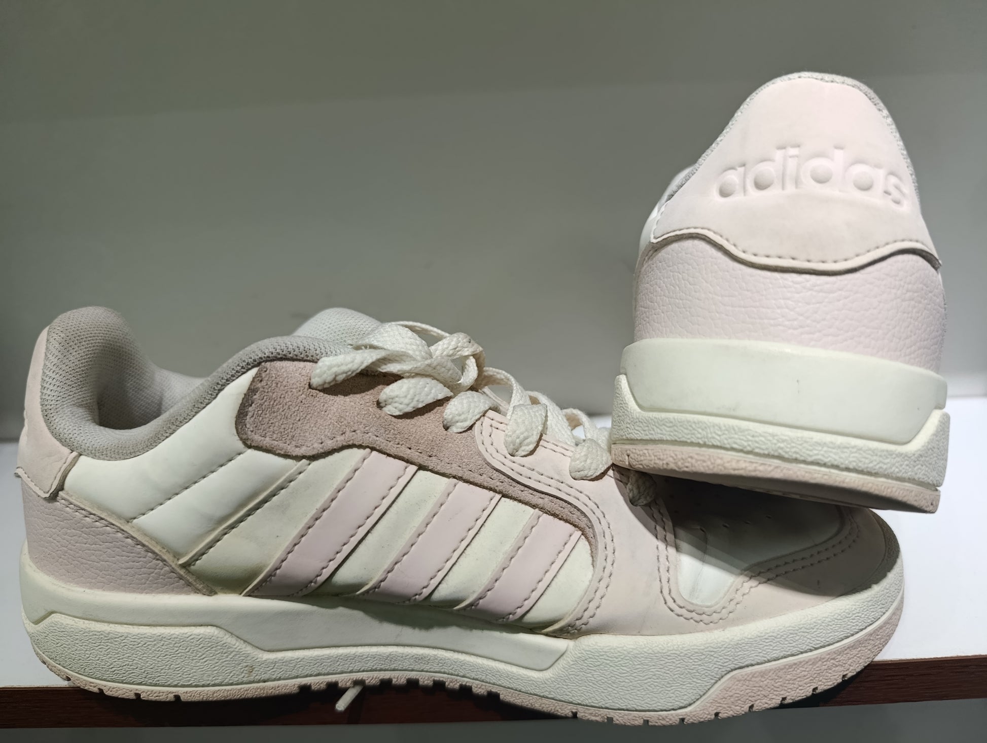 Las zapatillas Adidas Neo Entrap Low (IE3904) combinan el estilo retro del baloncesto con un diseño moderno en colores blanco y rosa claro. Cuentan con una parte superior de cuero duradero y una cómoda plantilla OrthoLite®.