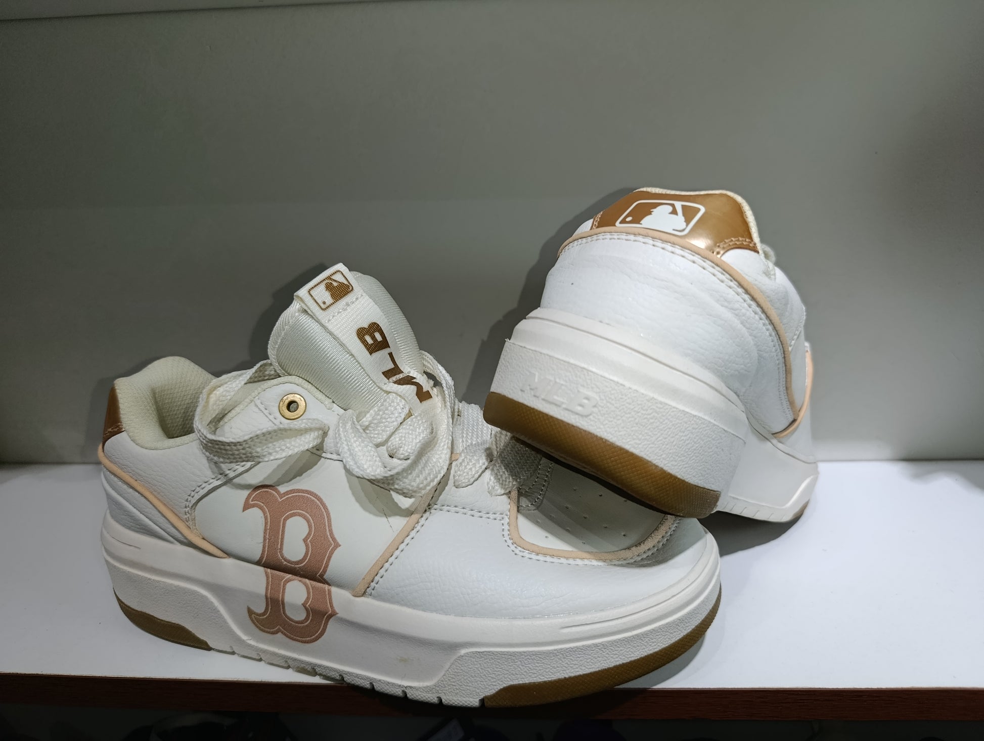 Las zapatillas MLB Chunky Liner Boston Red Sox 'Gold' fusionan el icónico legado del béisbol con un estilo urbano audaz. Su estética en tonos marfil/blanco, con el logotipo "B" de los Red Sox y detalles en tono dorado, evocan un estilo llamativo y elegante. Confeccionadas con piel sintética de alta calidad y una suela de goma gruesa, ofrecen comodidad y soporte excepcionales para el uso diario. Este modelo unisex presenta materiales premium y una suela vulcanizada.