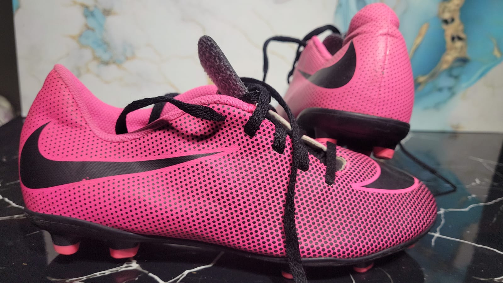 Los botines Nike Jr. Bravata II FG están diseñados para jugadores jóvenes que buscan velocidad y agilidad en el campo. Con un llamativo diseño en rosa fuerte ("Pink Blast") y negro, estos botines combinan un estilo audaz con un rendimiento funcional.